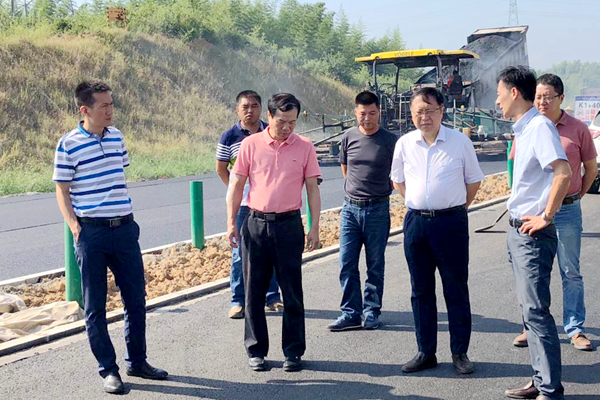 省交控集团总经理钱东升莅临广宁高速路面项目检查指导工作 发布时间:2018年08月10日 来源:路面公司 发布人: 作者:图/文 褚祥 葛伟 浏览:3541次 8月8日,省交控集团总经理钱东升、建管部部长苏新国一行莅临广宁高速路面项目检查指导工作,广宁高速项目办主任方昱陪同。 钱东升一行深入沥青施工现场,对正在进行的沥青摊铺施工进行了检查指导。钱东升要求项目部要统筹应对此轮材料价格上行压力,多措并举加快沥青料的储备,积极抢抓有利天气进一步加快施工进度;同时要做好防暑降温工作,确保广宁高速按既定时间节点顺利通车。