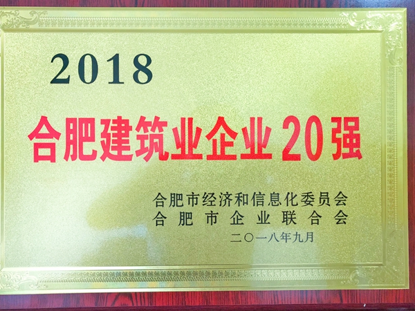 公司首次荣膺“合肥建筑业企业20强”