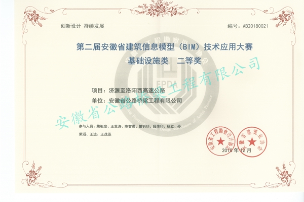 12月27日,第二届安徽省建筑信息模型(BIM)技术应用大赛总结表彰会在肥举办。公司派出的黄河特大桥项目团队荣膺大赛基础设施类二等奖。