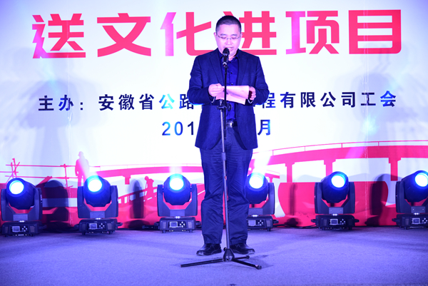 省建设建材工会主任程德旺应邀致辞,他表示本次送文化进项目,把职工喜闻乐见的文化形式送到一线,营造健康向上的文化氛围,增强了企业的凝聚力和向心力。希望省路桥公司广大建设者再接再厉,把干事创业的热情贯穿企业高质量发展全过程,为安徽省建筑业的发展作出更大贡献。
