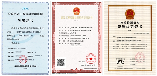 理念成就发展,坚守铸就跨越。环通公司坚持一本蓝图绘到底,从无到有,从弱到强,走过了14年的创业之路。新时期,随着全国交通建设领域的大建设大发展,环通公司依托安徽建工集团品牌优势,精准定位,抢抓发展机遇,加快转型升级步伐,实现了高质量、可持续发展,已经成为专业化从事公路、桥梁、市政、轨道交通、电力等领域技术服务的综合性试验检测单位,拥有交通部综合乙级公路工程试验资质、计量认证资质和省建设厅见证取样资质。