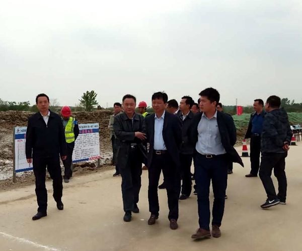 4月27日,淮南市委常委、寿县县委书记胡春华一行到公司承建的寿县新桥国际产业园道路扩展项目调研指导工作。