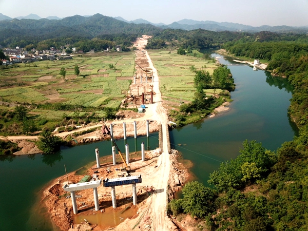 3月25日复兴桥下部结构基础完成,3月31日莲花山隧道右线削竹式洞门施工完毕,4月4日梁场首片梁板完成浇筑,4月5日路基一队与二队清表完成、便道实现贯通,全线路基、隧道、桥梁工程多点发力,工程建设稳步推进。期间,受降雨影响,白洋河桥圩区遭到破坏,项目党支部迅速成立应急施工小组,全天驻点抢抓工期,目前白洋河水中墩已全部浇筑完毕,钢便桥也已经完成铺设,如期完成既定任务,减轻了雨季到来前的施工压力。