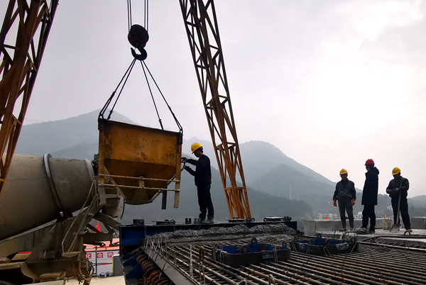 在全长8.18公里的施工线上,荆竹坑大桥、2#拌和站、2#预制梁场及钢筋加工场等多个施工点同时多点作业,多个工序同时推进。其中,荆竹坑大桥左线2#桥桥台施工不间断;2#拌和站春节期间共完成砼量320方;2#预制梁场施工人员全部就地过年,加班加点作业,保证每日浇筑3-4片预制桥梁板,春节期间完成近30片梁板,为全线桥梁梁板架设奠定有力基础。