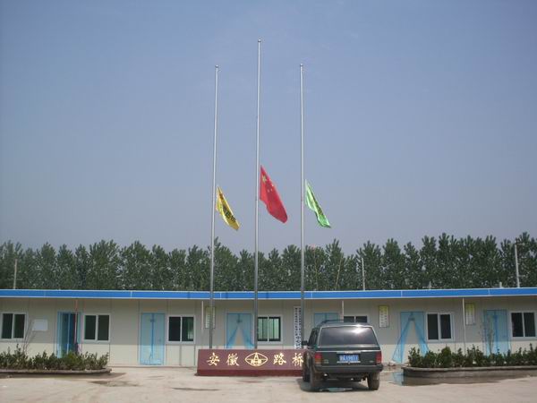 今天是5.12汶川地震一周年,一大早,泗许高速亳州段01标项目部便降半旗表示沉痛哀悼。