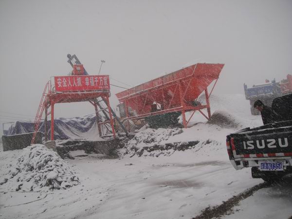 上午,项目部经理陈莘来到位于海拔3800米32K拌合站,检查拌合站机械车辆的安全防冻工作。要求项目部各施工区域不仅要注重雪天的人员安全,更要注重机械车辆的保暖防冻工作,努力延长机械的使用寿命,提高机械的使用功率和效率。