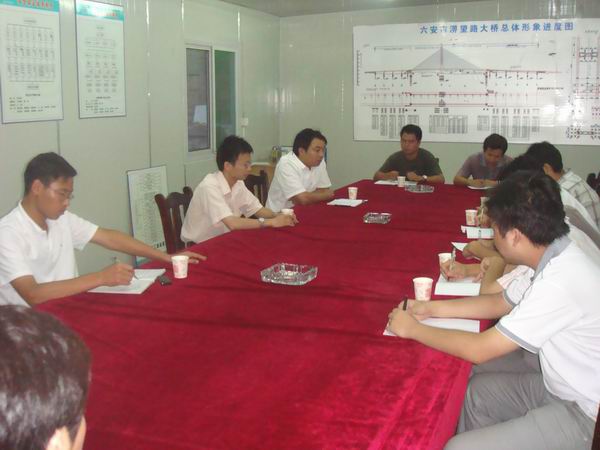 针对北岸引桥箱梁砼浇筑后,对成型构件出现的问题,由全体技术人员先找原因讨论解决办法,随后,崔总对所提出问题逐一进行了原因分析,提出了解决的办法。大家感到这种有针对性地培训,接受的快,收效很大。最后,项目经理江仲明要求在当前工程冲刺关键时刻,所有技术人员要切实增强质量意识,强化质量工作责任,加强质量考核工作,并强调各部门、各作业队要对检查出的质量问题严肃处理,认真落实整改。