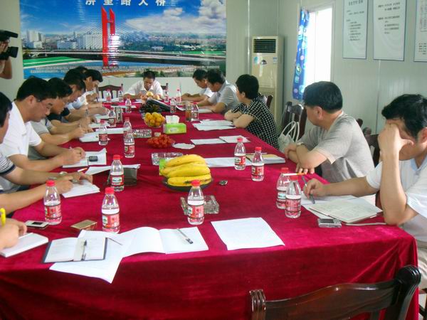 李书记一行首先深入施工现场,一边询问工程进展情况,一边查看和指导。随后在淠望路项目部会议室听取了六安市建委、项目监理单位、施工单位对淠望路大桥项目管理、施工进度等情况的汇报。李书记在肯定项目前期工作成绩的同时,对淠望路大桥后期施工工作提出了具体要求和指导意见:一、工程项目重要性。淠望路大桥乃是六安市重点建设工程之一,地处城市核心地带,是贯通新老城区的一条重要联系纽带,建成后将成为六安市标志性的建筑;二、目标要明确。淠望路大桥的建设是六安人民关注的焦点,政治和社会意义重大,市委市政府高度重视。要求施工单位要加强质量控制,加快工程进度,在施工各个环节力求做到科学化、规范化、程序化、标准化,要优质、高效、安全、按期完成淠望路大桥施工任务,力争夺取“黄山杯”;三、措施要有效。要求施工单位加大机械设备和人员的投入,并认真落实各项措施,确保组织管理到位,现场技术力量到位,既定进度到位,安全管理到位,质量控制工作到位,争取把淠望路大桥建成优质工程,早日向六安市人民交上一份满意的答卷。最后,李书记对安徽路桥在淠望路大桥建设中做出的努力给予了高度的评价。