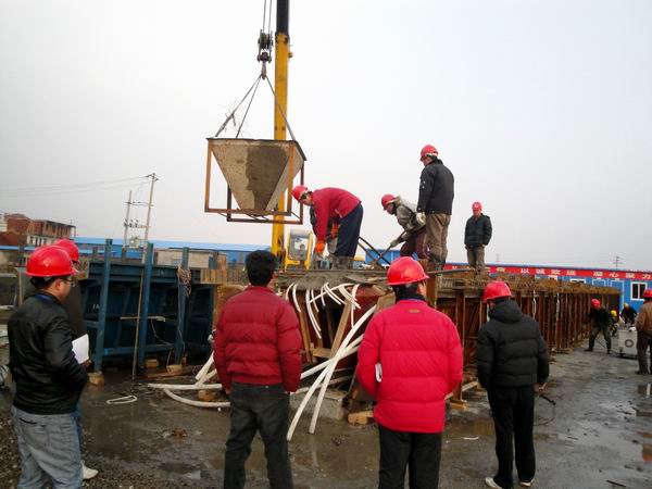 我部人员自正月初八进场以来,克服近半个月的连续阴雨天气,精心准备,合理组织,完成了预制场建设、材料进场、设备标定调试、标准实验等一系列工作,从而保证了此次箱梁的顺利浇筑。此次浇筑,是我部拌合站建成以来,首次投入正式结构工程的生产,也拉开了下一步规模生产的序幕。