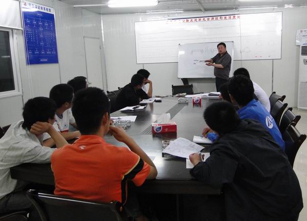 为了提高广大技术员的综合素质和技术能力,加强内部交流和沟通,同时为了更好的贯彻执行项目2010年内训工作计划,5月23日晚,桥梁技术质量内训课程在宜巴高速09标如期举行,项目总工吴昊担任课程主讲人。
