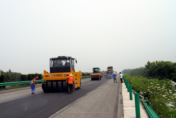 试验段起讫桩号为K37+325—K38+765,总长度1.44千米。为了保证试验段摊铺工作的圆满完成,7月6日晚,我部召开了试验段施工技术交底会议。从前后场施工前准备工作、机械设备检查、沥青原材料质量控制、摊铺及碾压时的注意事项、现场施工的人员安排、车队管理等几大方面作了详细的技术交底和周密部署。在项目办及驻地办领导的大力指导下、在我项目领导人员的正确带领下、在前场技术员与施工人员的密切配合下,试验段施工工作进展顺利。