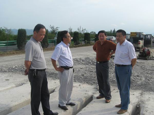 殷书记首先视察了我部于15日顺利完成沥青施工的无量溪大桥,详细询问和了解了原桥梁施工方案以及桥面橡胶沥青的铺筑情况,并要求在后续的施工过程中要继续严把质量关,确保广祠高速能够成为一条质量经得起考验的改建工程。随后殷书记又来到正在施工的封闭路段,勘察了正在进行的桥梁施工,询问了我部的施工计划,并叮嘱了在桥梁施工中要注意的一些问题。