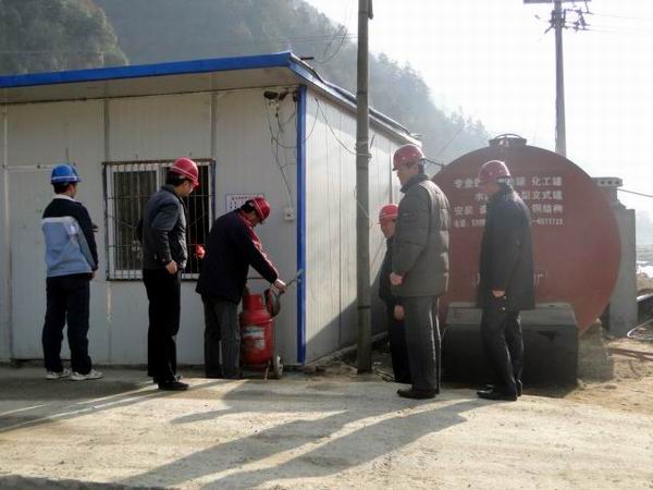 本次检查由分管安全的党支部书记邵建新带队,生产副经理朱达霏、安全部长万和国及各工区长、工区专职安全员共同参加,主要对各工区施工点现场逐一进行排查,确保不留安全隐患。检查组重点针对拌合站的防盗、防滑和用电安全、梁场的临时用电、梁场张拉操作及安全交底、桥梁施工栏杆防护、边坡施工防护和油库防火设施进行清查。检查拌合站时,发现拌合站人员防盗意识不强,人走不关门,给予负责人严厉批评。对梁场实施张拉施工强调指出一定要按照操作规程进行;针对桥面施工桥面防护网脱落的情况,当场处理,并给予责任人下发整改通知书;在油库旁边检查灭火器情况,当场演示灭火器的使用。