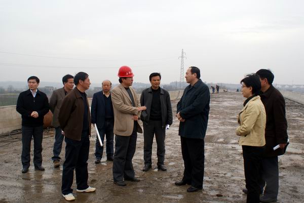 3月19日上午9:20,芜湖市政府副市长朱诚在市交通局、公路局、芜湖县政府等相关领导陪同下,来我青弋江大桥视察指导工作。朱市长一行下车后步行上桥,看到我大桥护栏、砼桥面已全部完成后,非常高兴。在听了基本情况汇报后,他指出:这座桥是这条路的龙头,希望能早日通车,并对项目部提出要求,4月15日一定要完成沥青路面及附属工程,确保简易通车。