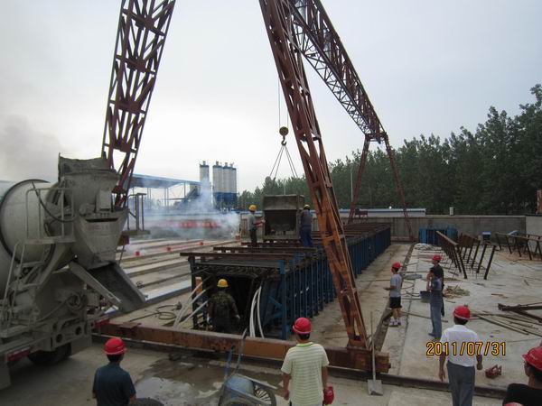 徐明11标第一片箱梁预制成功 发布时间:2011年08月02日 来源:徐明11标 发布人: 作者:李发林 浏览:3351次 8月1日凌晨3点,在项目部的精心组织和全体参建人员的共同努力下,徐明高速路11标第一片箱梁预制成功,标志着该项目部大规模预制箱梁的序幕已经拉开。