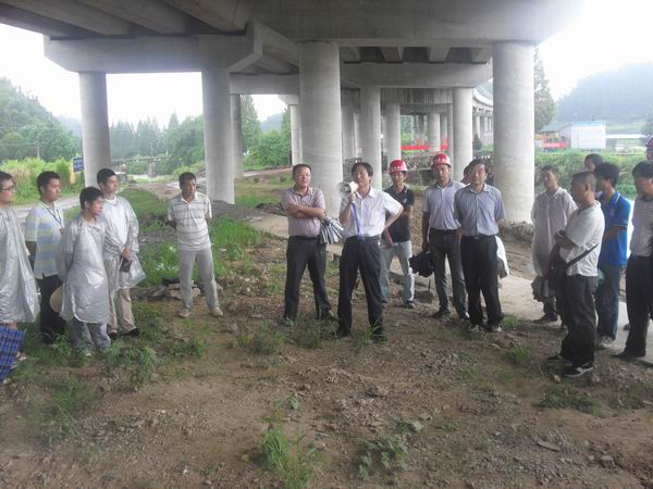 此次观摩会由项目办组织,总监办结构工程师杜宝主持。针对护栏砼工程的施工工艺、施工程序、工程质量及现场管理,蒋小敏副经理作了详细的汇报。杜宝工程师对主要工序及主要控制要点进行了现场指导。
