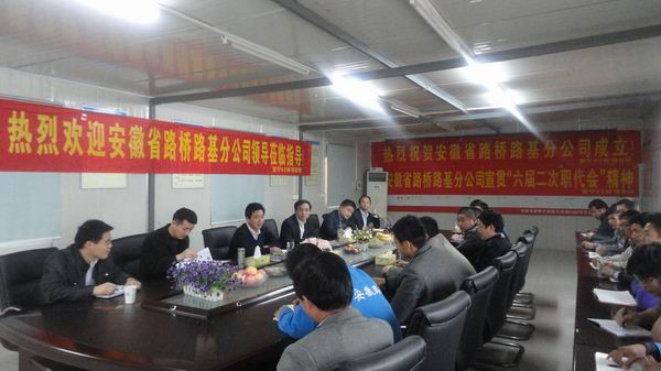 在项目召开的会议上,杜经理介绍了安徽路桥道路工程公司成立的背景、规划及目标,对分公司领导班子进行了介绍。杜经理强调指出基层项目部要加强队伍建设和人才培养,为道路公司的长远发展奠定基础。李书记传达了公司六届二次职代会精神,带领大家认真学习了汪卫东总经理的工作报告和陈光磊书记的总结讲话。项目经理余跃对该项目工程概况与项目人员情况进行了介绍。