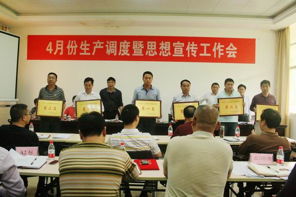 江西大广B1标喜获双奖 发布时间:2012年04月12日 来源:江西大广B1标 发布人: 作者:熊祖发 浏览:3128次 2012年4月11日下午,大广项目办召开了4月份生产调度暨思想宣传工作会议,会议通报了2、3月度综合评比情况,并对2011年度参建单位宣传工作进行总结。会上,我部喜获全线综合评比路基项目第一名好成绩,同时还荣获2011年度项目思想宣传先进单位称号。业主单位赣州高速公司总经理温杨汉亲自给项目经理罗权颁奖并予以表扬。 好成绩的取得是项目全员共同努力的结果,更是公司强有力支持和帮扶的结果。我部全体员工将以此次评比为契机,扎实做好后续各项工作,再接再厉,努力打造江西第一条山区六车道高速公路精品工程,维护好安徽路桥在江西市场的品牌形象。
