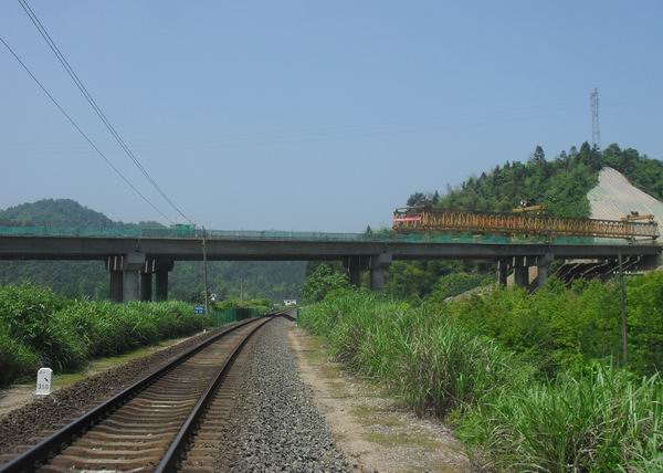 黄祁08标上跨皖赣铁路桥箱梁安装完成 发布时间:2012年05月11日 来源:黄祁08标 发布人: 作者:奚维峰 浏览:3421次 2012年5月11日早上,伴随着隆隆的鞭炮声,黄祁08标上跨皖赣铁路桥的最后一片40米箱梁随着架桥机缓缓落下,标志着我标段金字牌铁路桥主体工程的完成。