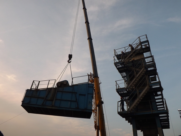 G205改建路面项目完成拌和站主楼吊装 发布时间:2013年07月19日 来源:G205改建路面项目 发布人: 作者:杨艳峰 浏览:2772次 7月17日下午3时,伴随着响声震天的鞭炮声,两辆大型吊车在安全技术人员和作业人员的通力协作下,安全有序地进行拌和站主楼的吊装。经过全体施工人员的努力,于当日下午6时30分完成拌和站主楼的吊装。